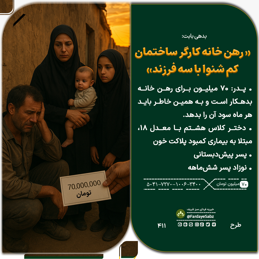 بیایید دست در دست هم، این خانواده را از بند ربا و بدهی نجات دهیم.