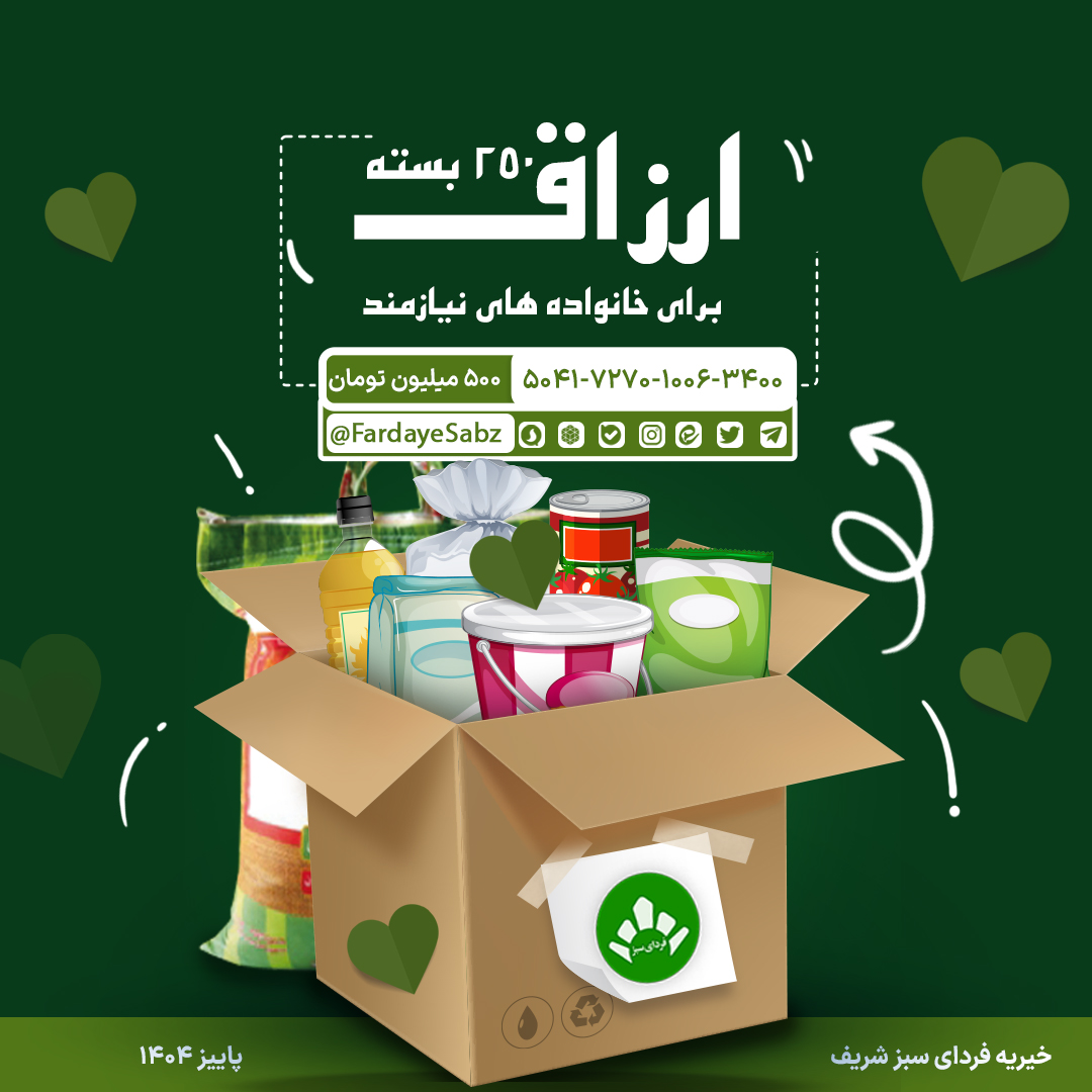 ۲۵۰ بسته ارزاق خانوادهها → ۵۰۰ میلیون تومان