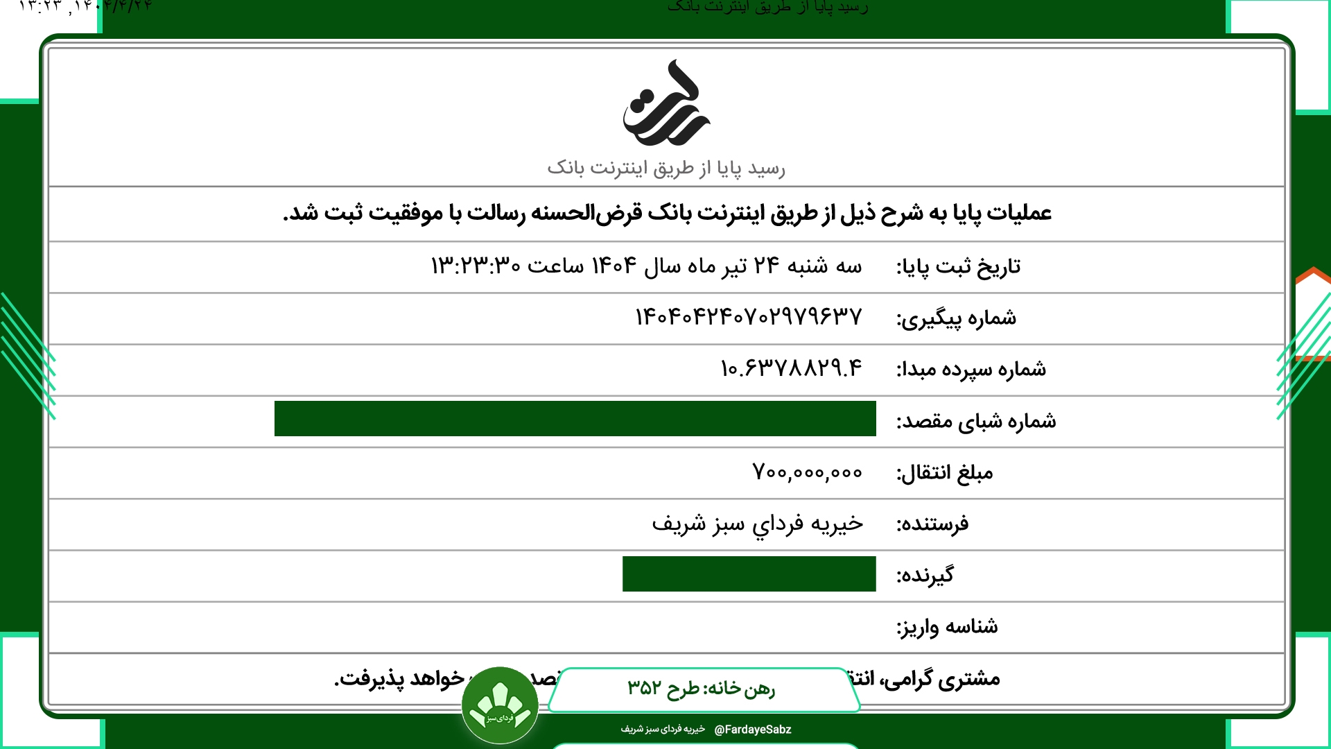 فیش بانکی واریزی را در ادامه گزارش مشاهده کنید.
