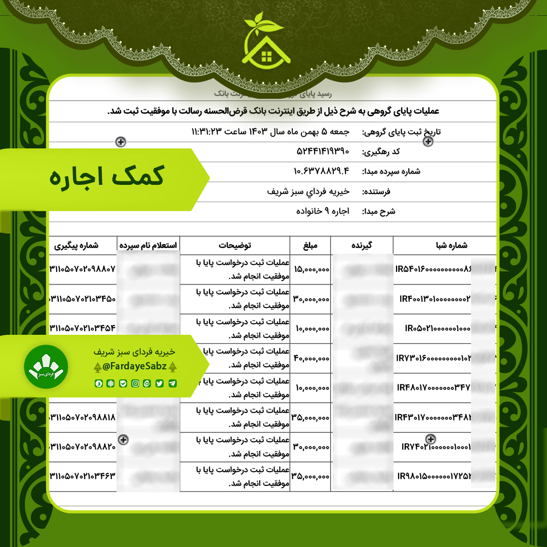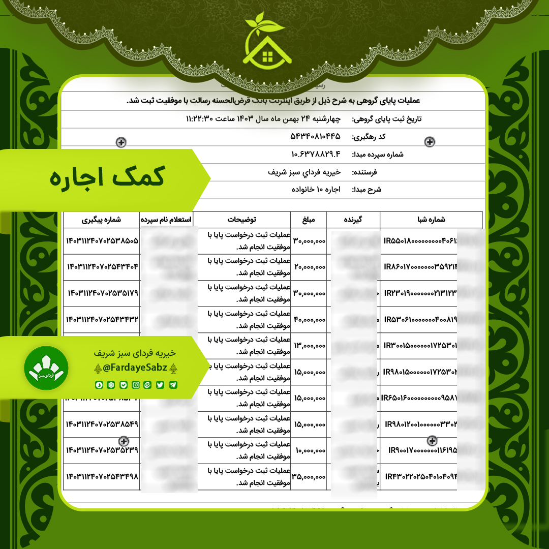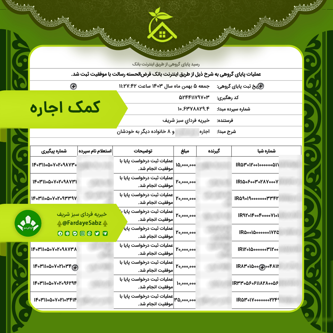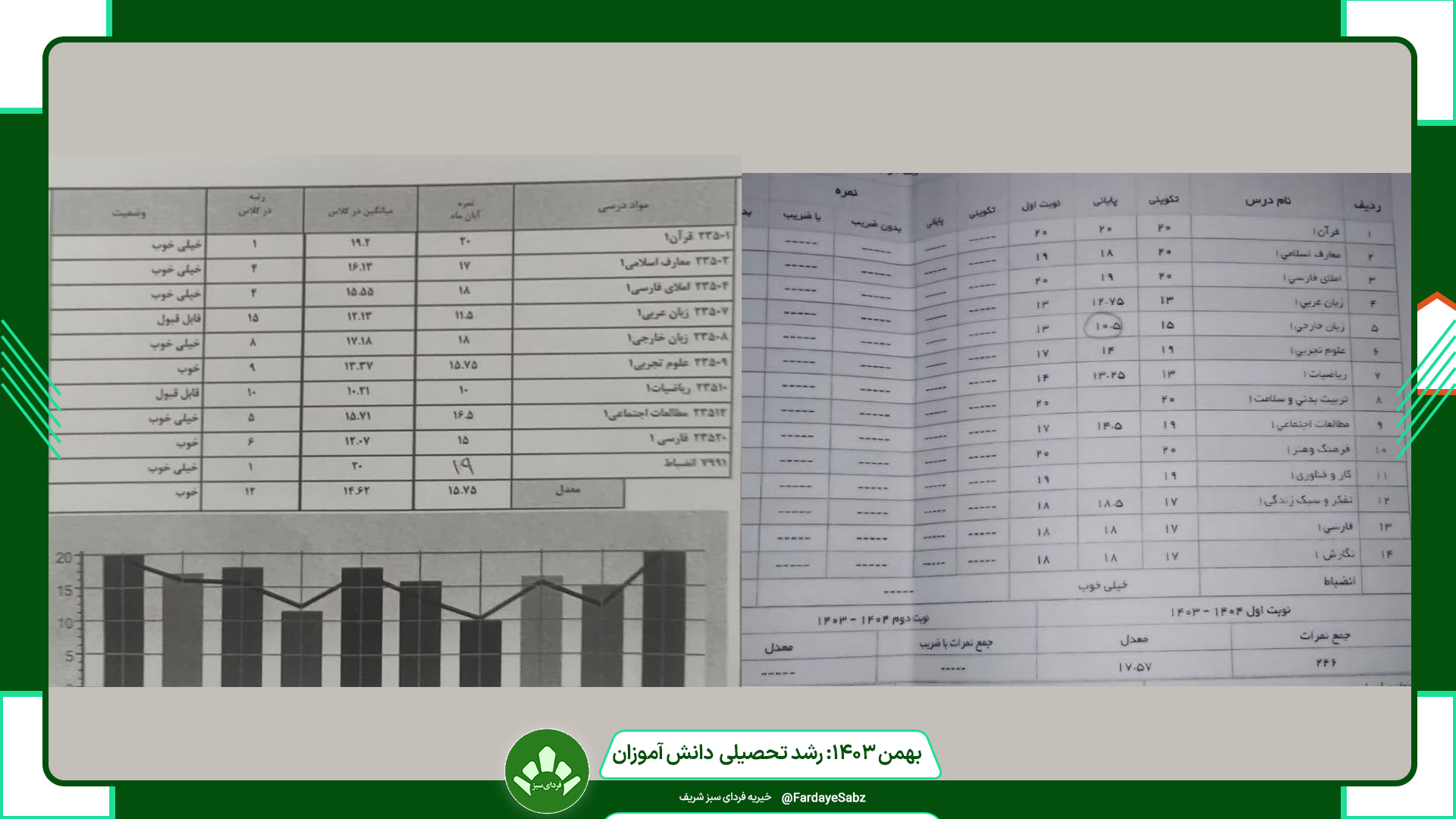 خیریه فردای سبز شریف گزارش مالی بهمنماه 1403