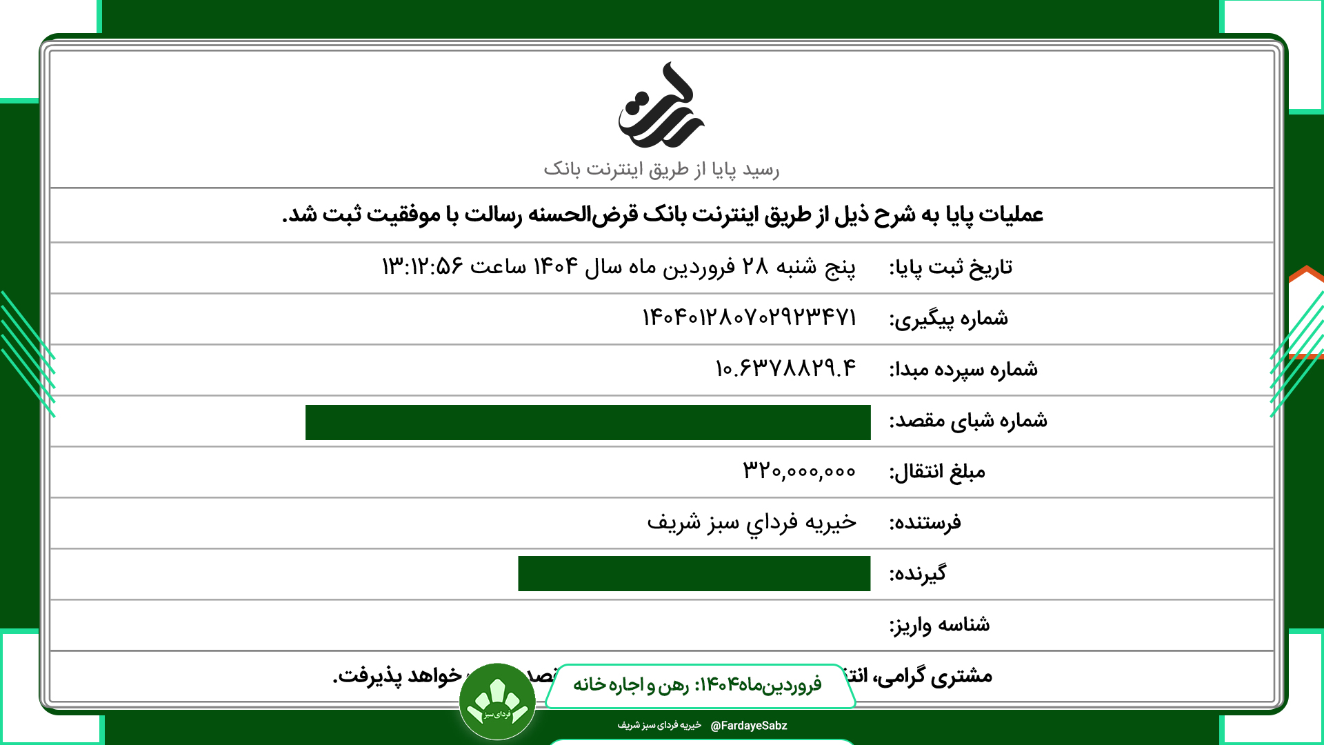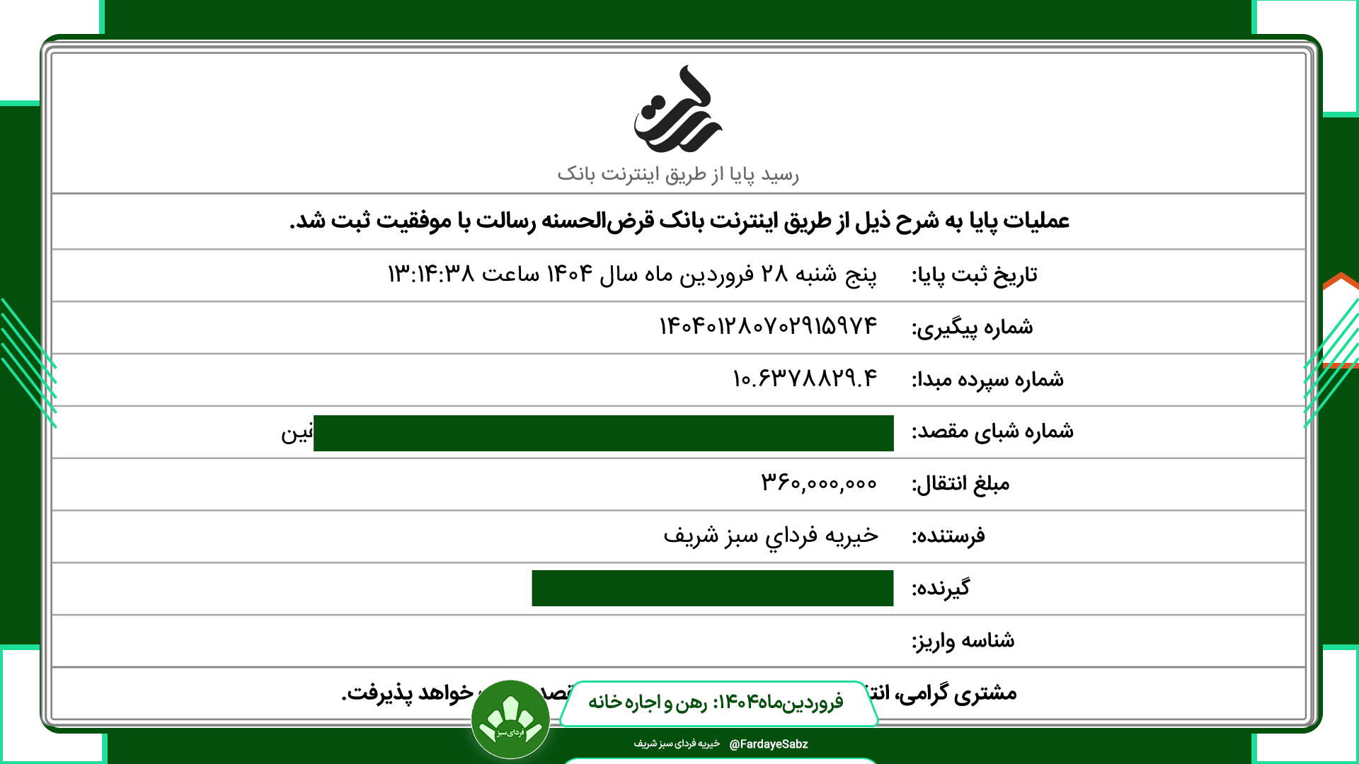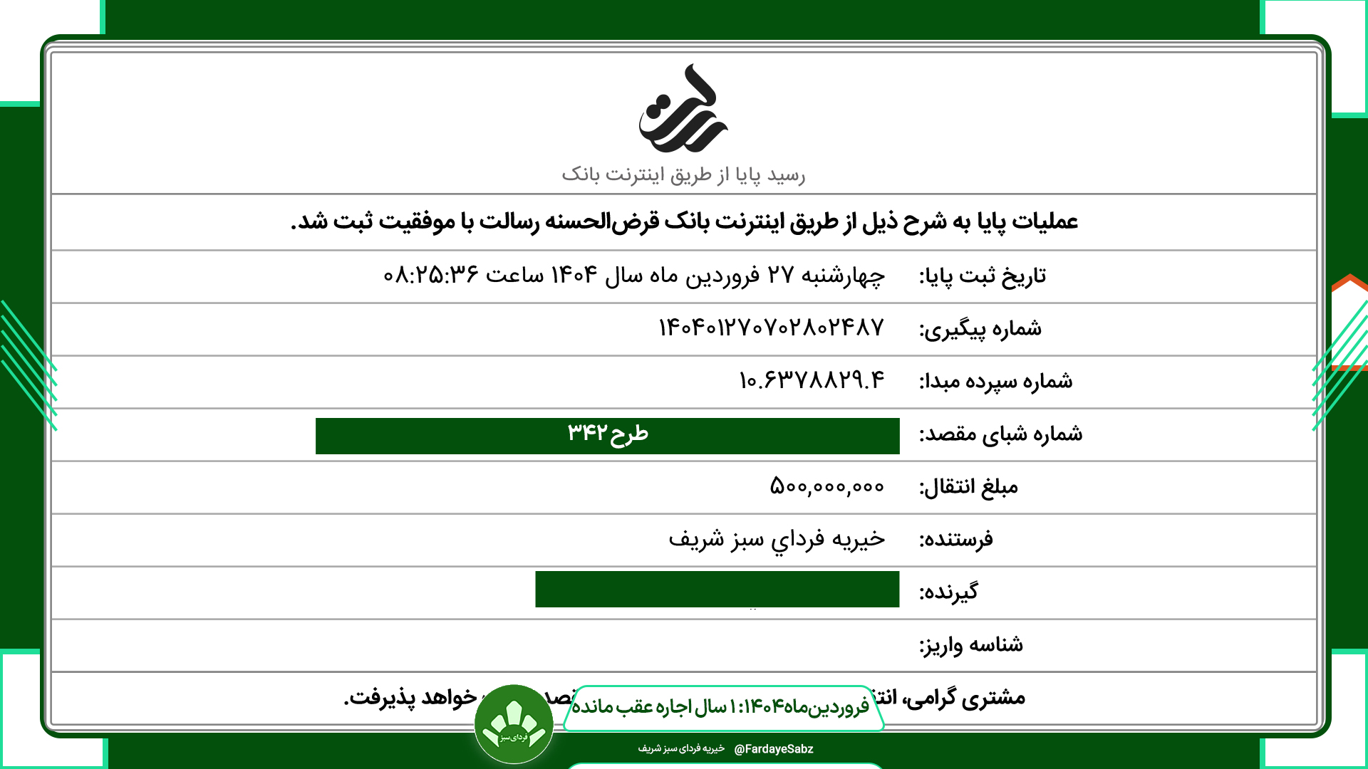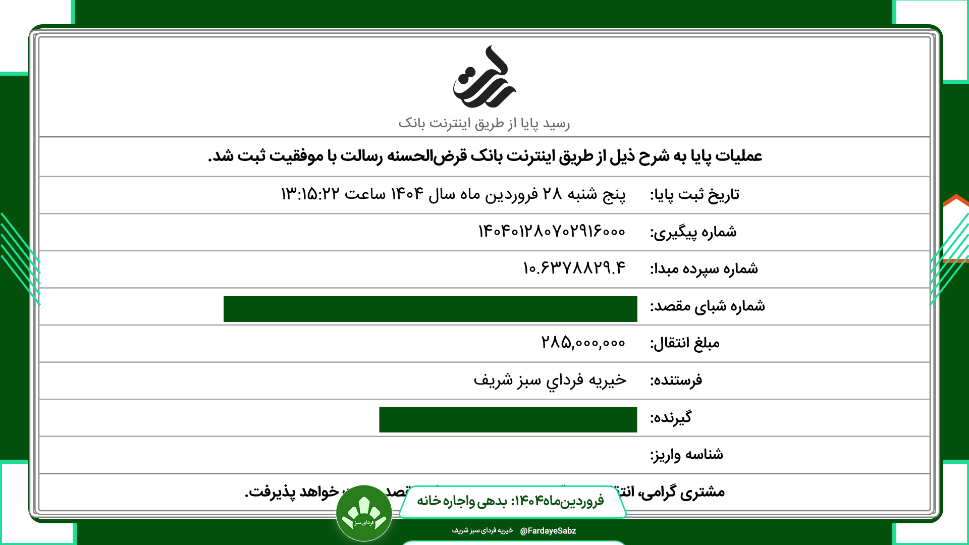 خیریه فردای سبز شریف گزارش مالی فروردینماه 1404